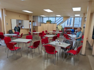 60 dining chairs and 10 rectangle tables (seating up to 6 chairs per table)